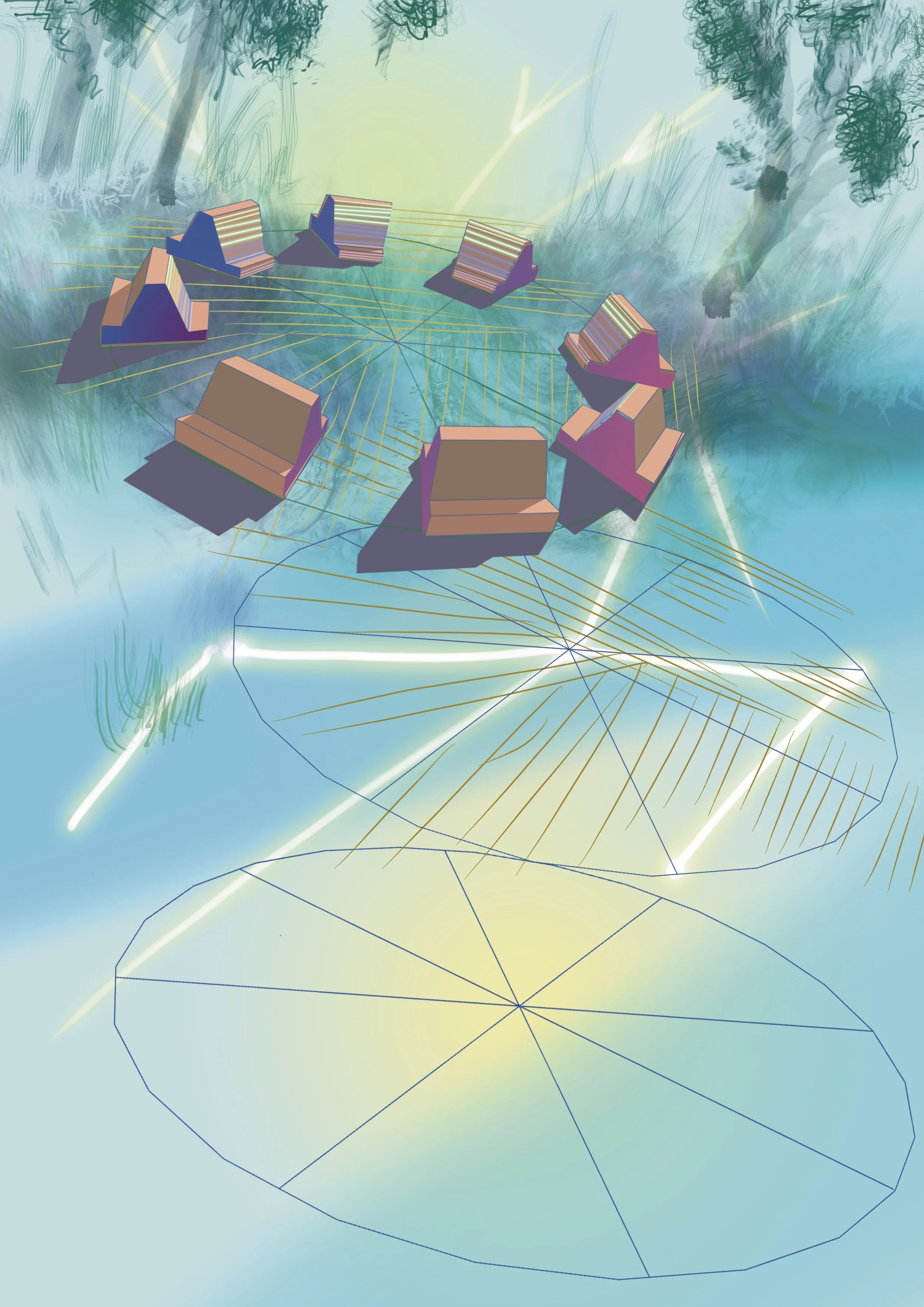 Cette installation circulaire de 10m de diamètre, l’estrade sonore est constituée de huit bancs publics sonorisés à double assise. Elle permet une écoute sensible et de haute qualité dans l’espace public, sans nuisance pour son environnement.